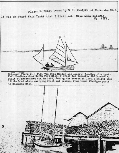 Captain Wallace Henry Van Dyke sailed on Lake Michigan in winter and in summer in ice and gale and on still starry nights. When he was not sailing he cut and pasted with his left hand and made scrapbooks of the history of all the ships on the Great Lakes. His albums are a priceless record of both sail and steam vessels.