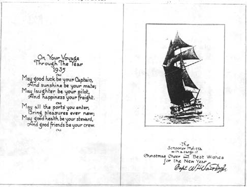 Captain Van Dyke sent Christmas cards reflecting his love of the sea. Below is one of those cards.