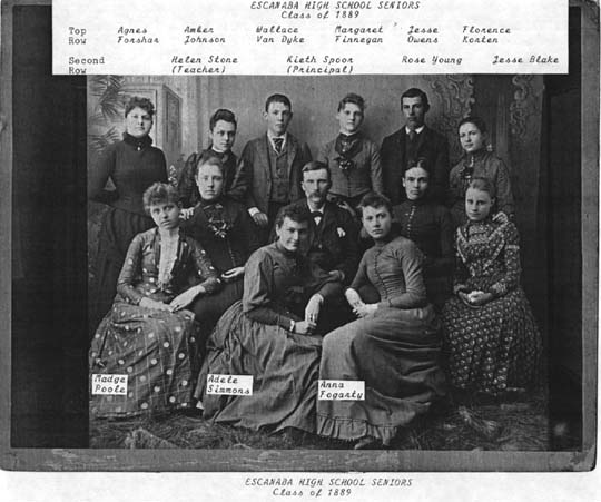 When Wallace graduated from the Escanaba High School at the age of 18 (1889) there were 11 students in his graduating class. This graduating class photo is on the preceeding page.
